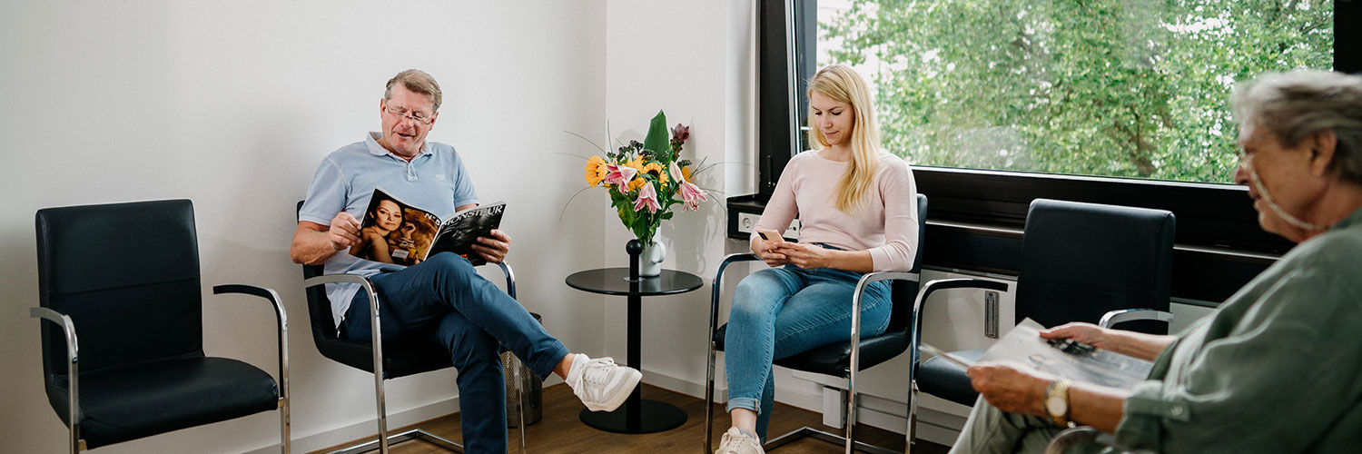 Durch eine sorgfältige Terminplanung und gutes Organisationsmanagement halten wir die Wartezeiten für unsere Patienten so gering wie möglich. Da eine verlässliche Kommunikation aber ein wichtiger Baustein unserer medizinischen Versorgung ist und der Gesprächsbedarf bei jedem Menschen anders ist, kann es trotzdem einmal zu Verzögerungen kommen. Auch können sich die Termine durch Notfälle etwas verschieben. Dafür bitten wir um Ihr Verständnis. Damit die Wartezeit für Sie so schnell wie möglich vergeht, stehen Ihnen in unserem Wartezimmer bequeme Sitzmöglichkeiten sowie vielfältige Zeitschriften zur Verfügung. Die Terminvergabe erfolgt zu den Öffnungszeiten telefonisch oder außerhalb der Geschäftszeiten bequem online hier über unsere Website sowie über doctolib.de.